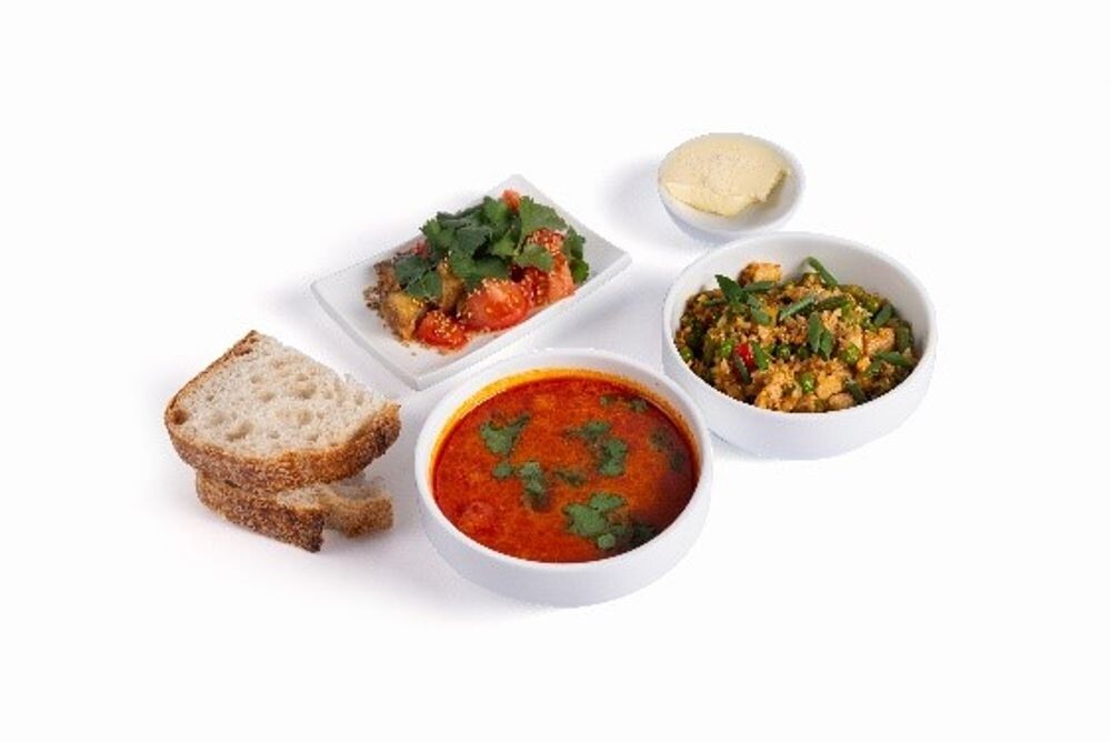 Том ям тауықпен Тауық қосылған Чахан Қытырлақ қосылған салат Тартин нан Сары май Үйде жасалған лимонад