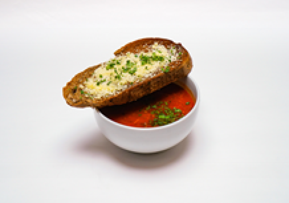 Сиыр еті, жасыл бұршақ, сарымсақ, тимьян, сәбіз және балдыркөк қосылған тауық сорпасы.