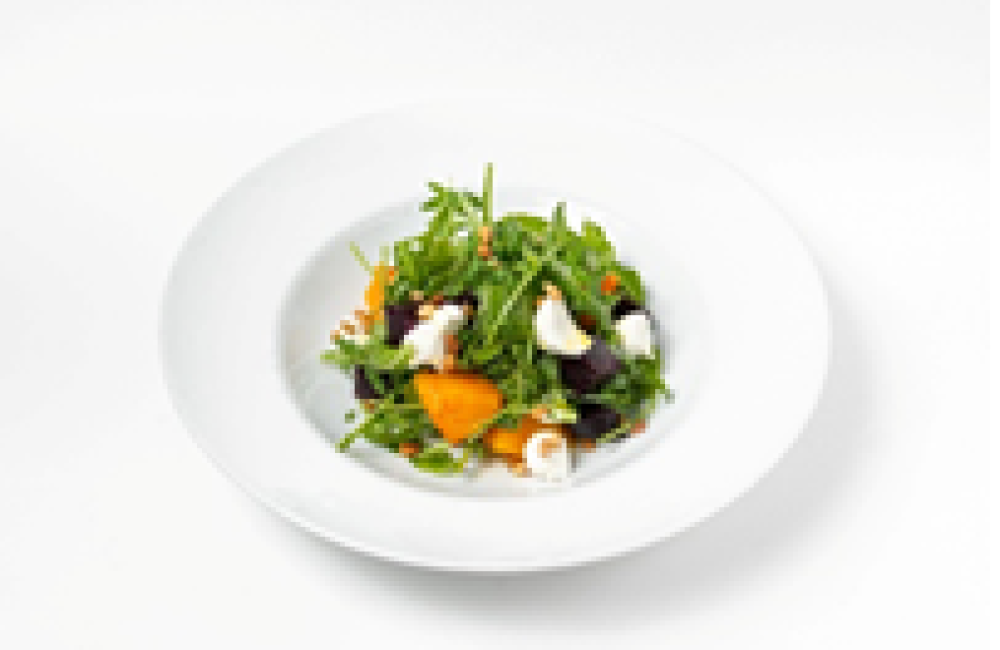 Асқабақ, қызылша, рукола, бал, қарағай жаңғағы, фетта ірімшігі.