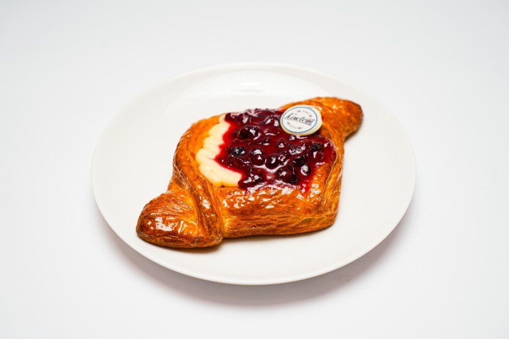 Қатпарлы қамыр, қаймақ, мүкжидек конфиті, қант шәрбаты