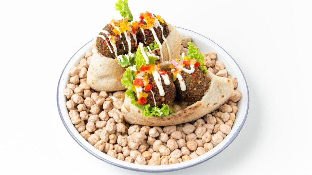 Лаваш жасыл бұршақ қосылған фалафель, салат, жасыл бұршақ, ащы тәтті тұздығы, бұрыш дәмі, майсыз майонез, қызыл бұрыш