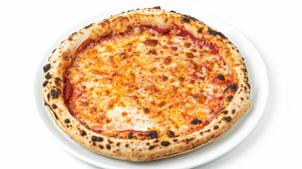 Итальяндық қамыр (фарина ұны, су, ашытқы, зәйтүн майы), томаттұздығы, моцарелла ірімшігі, гуда ірімшігі, орегано